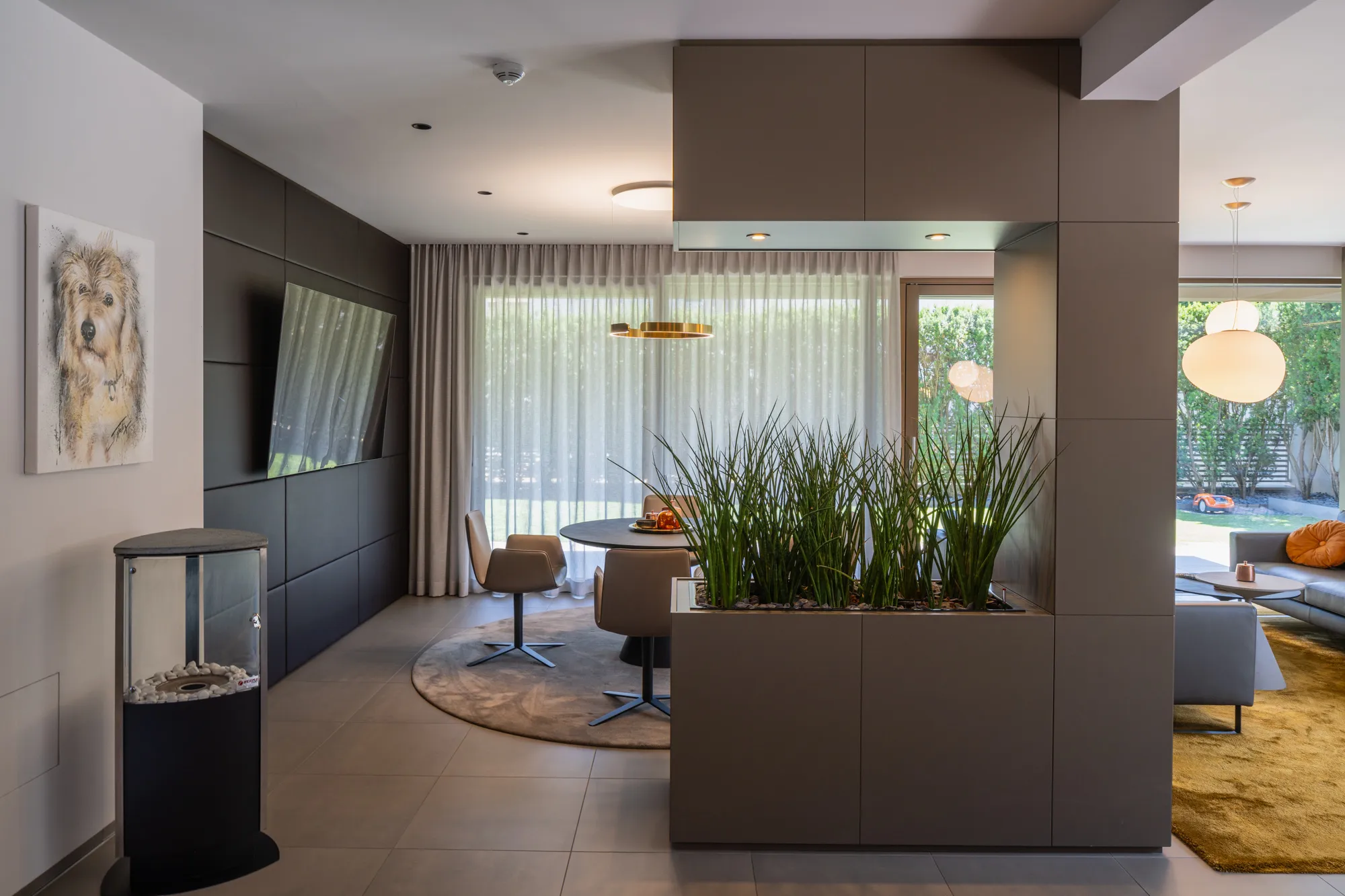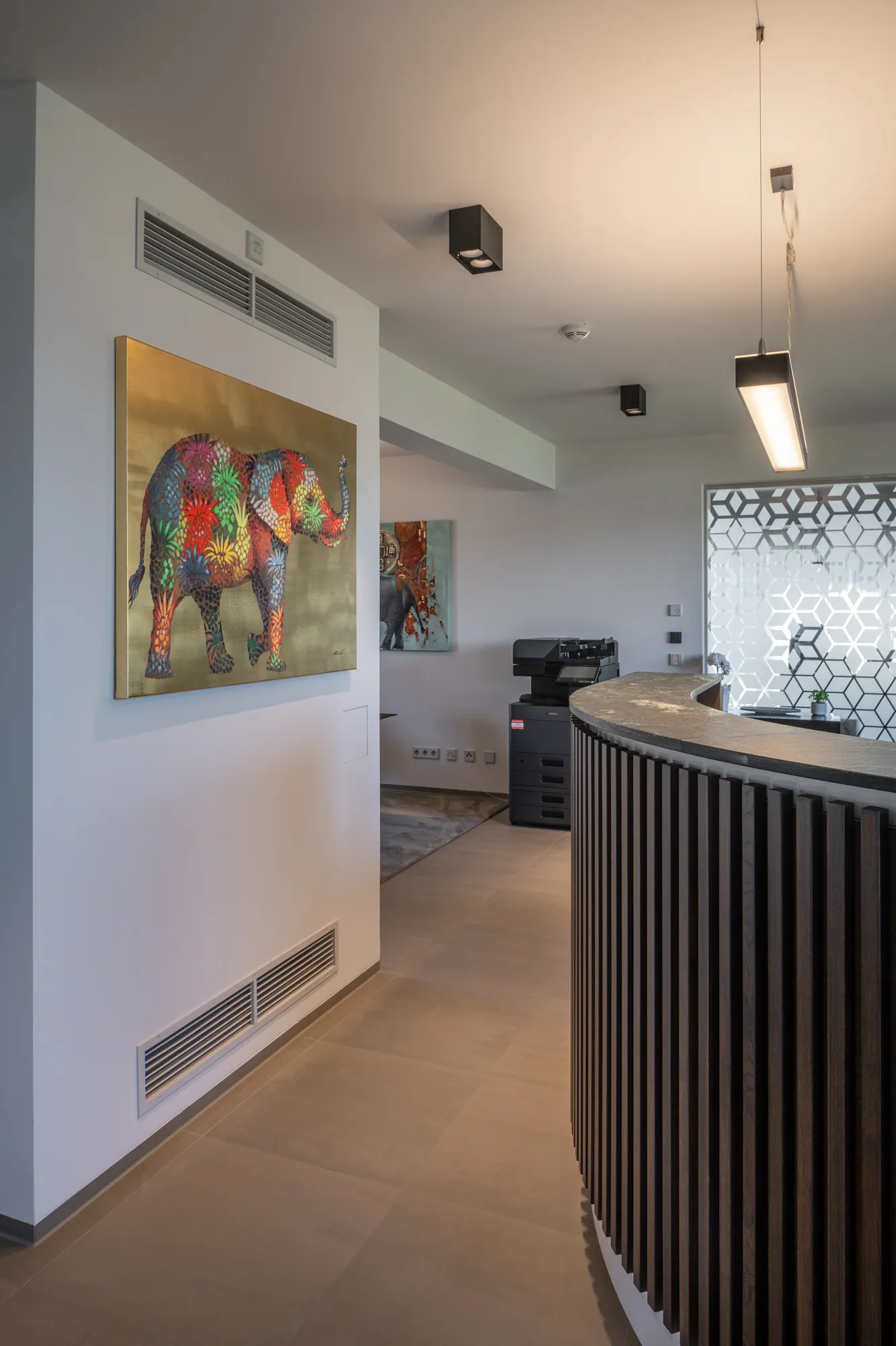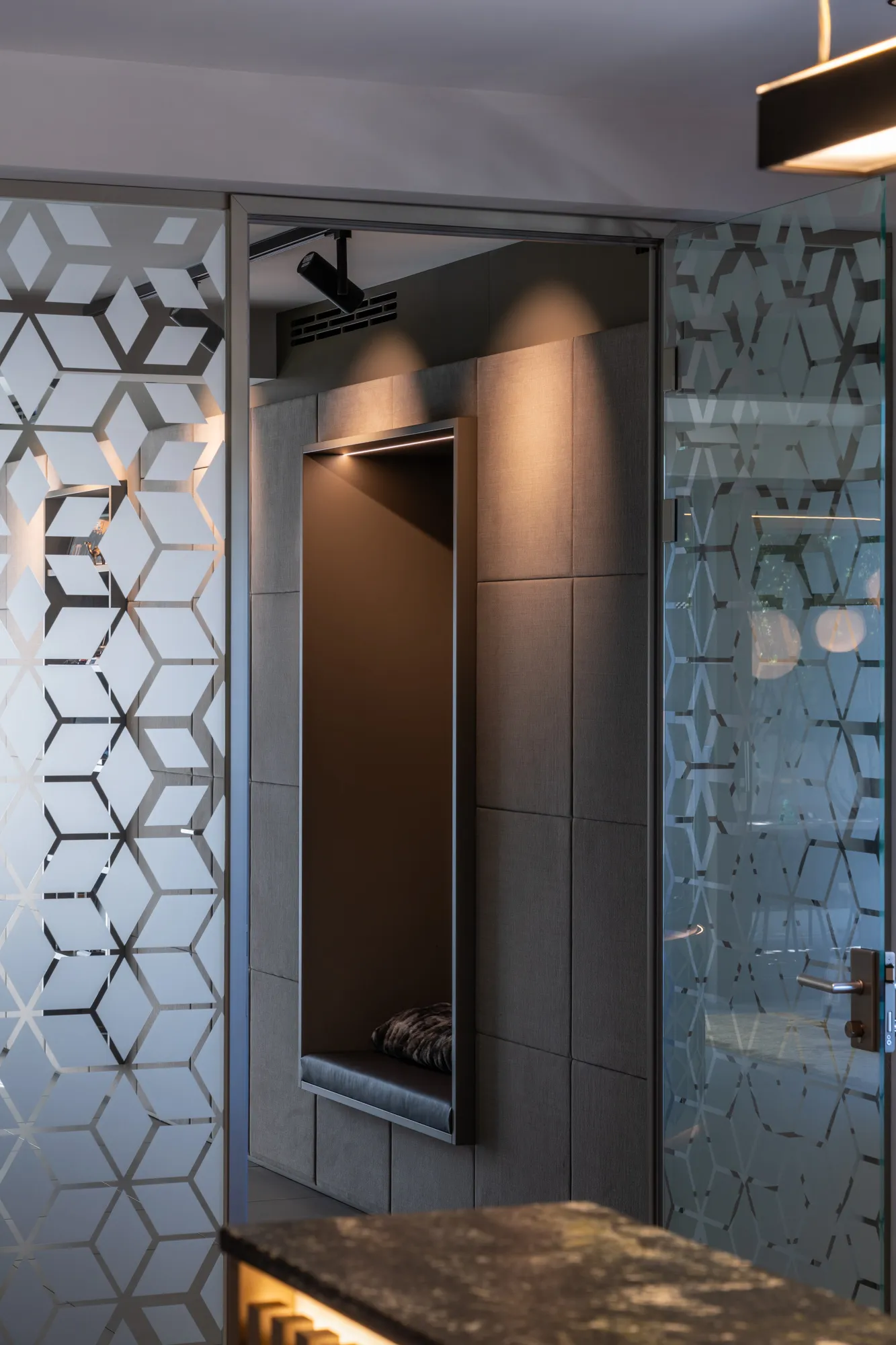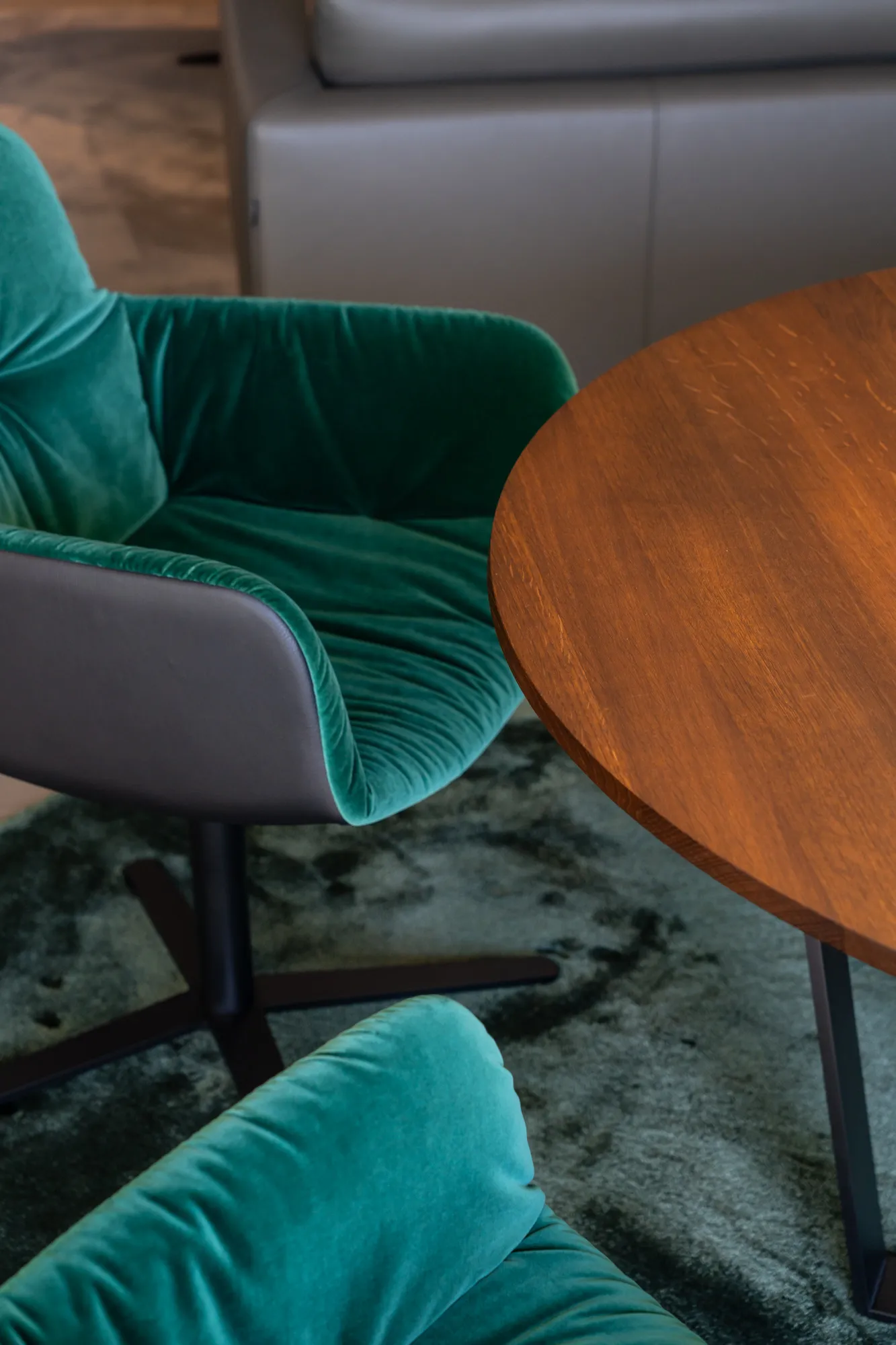 Dieses Büro zeigt, wie Handwerkskunst und Design zu einem stimmigen Ganzen verschmelzen. Dunkel gebeizte Eiche bildet die Basis, während Messing für edle Akzente sorgt. Die sorgfältig gestalteten Details verleihen den Räumen Charakter – ein Ort, der Eleganz, Konzentration und Wohlgefühl verbindet.