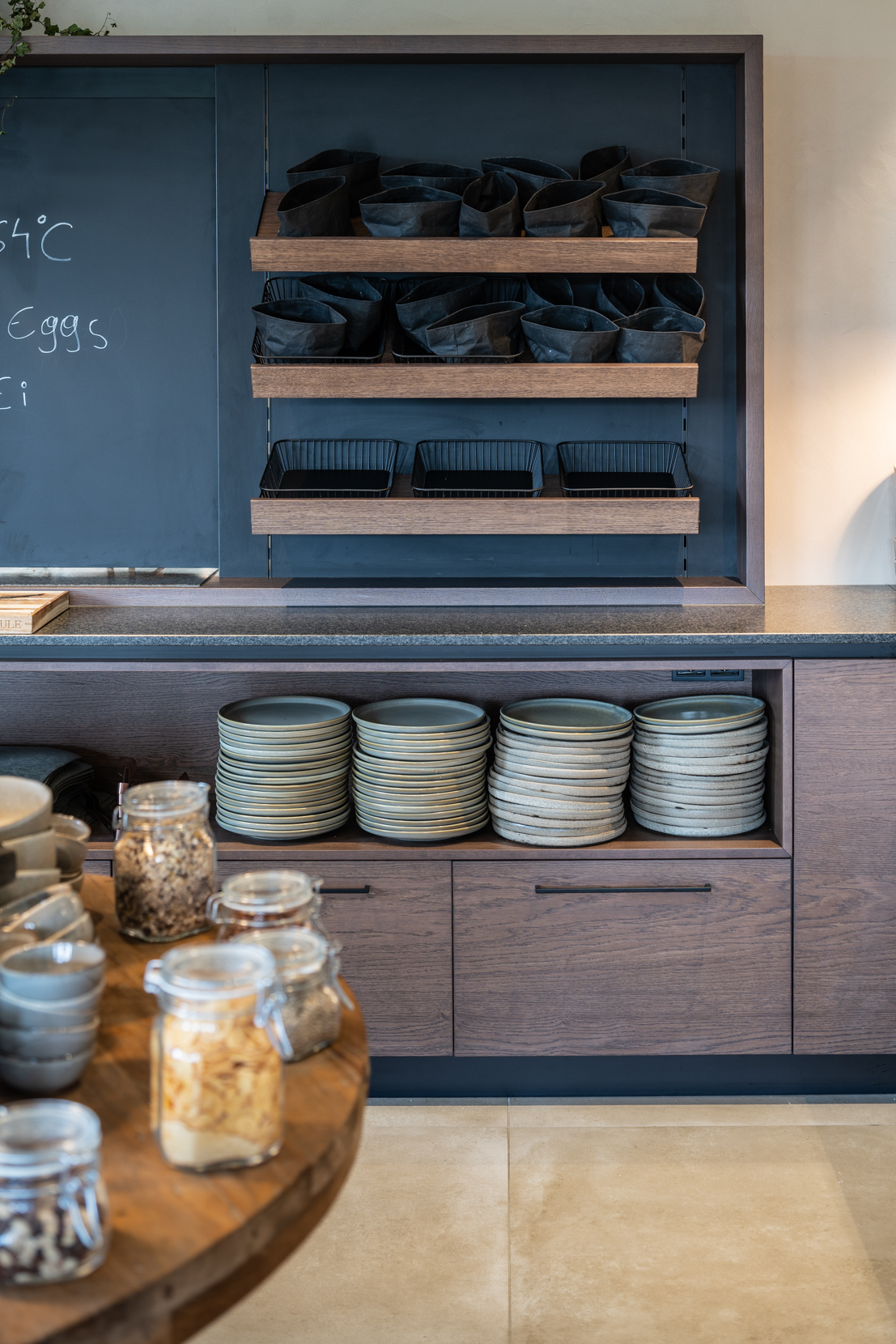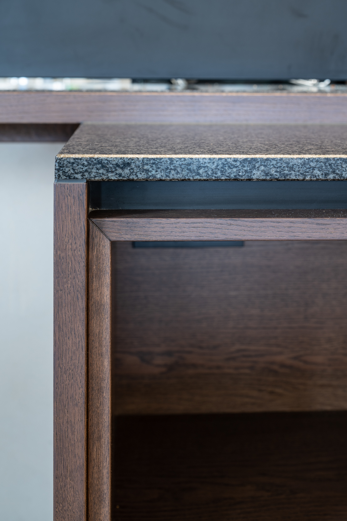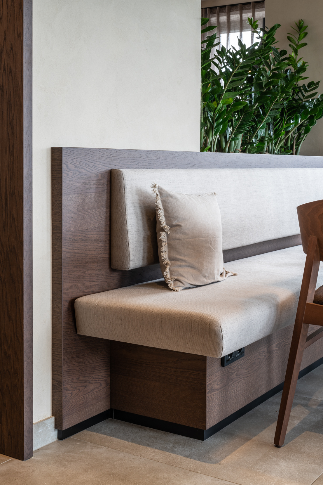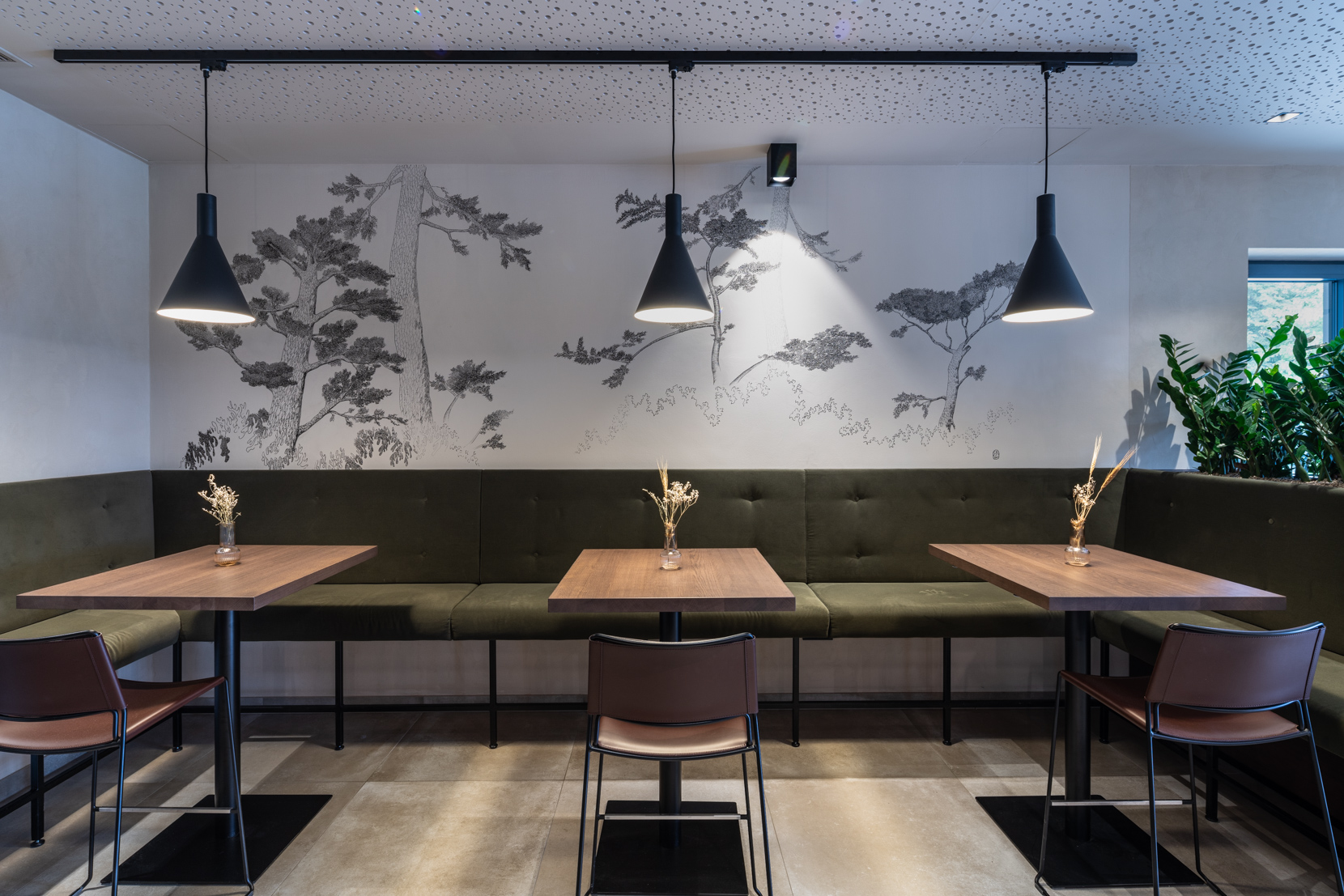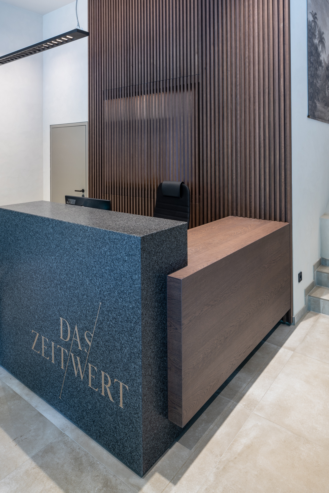 Naturstein Nero Impala und gebeizte, lackierte Eiche prägen das Interieur. Die klare Formsprache verbindet Eleganz mit Beständigkeit. Warme Materialien und sorgfältige Details schaffen Räume, die Ruhe ausstrahlen und zugleich modern wirken. Ein Hotel, das Geborgenheit und Stil vereint – für Gäste, die sich willkommen und wertgeschätzt fühlen.